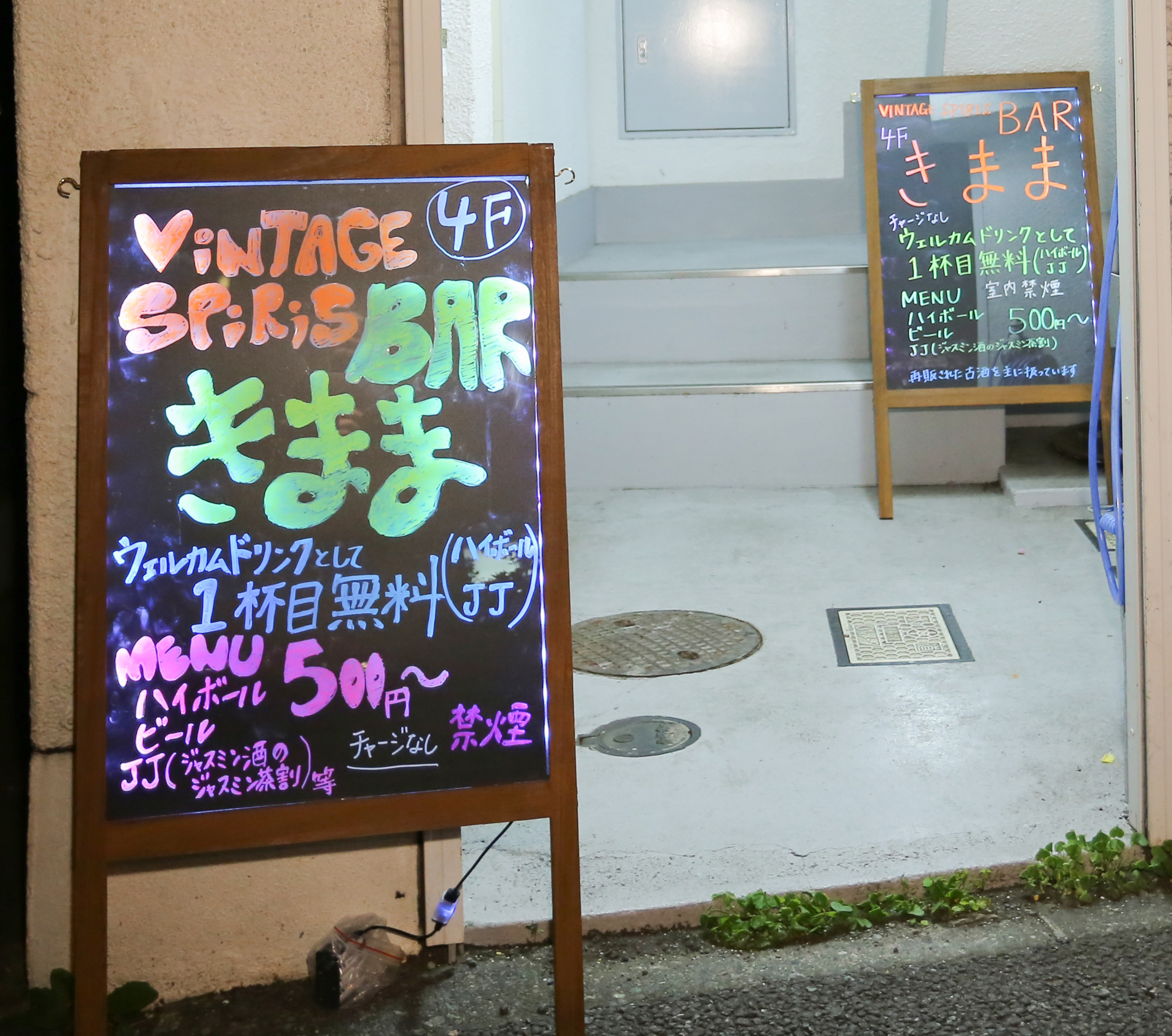 「BAR きまま」なのか「バー きまま」なのか「バー キママ」なのか迷ったが友人に聞いたら「BAR きまま」がいいと言われた。「漢字で